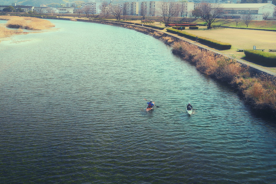 穏やかにたゆたう川面にそよ風の心地よさを感じる写真です。この穏やかな川には人に限らず様々な生とそれに関わる物語があり、何世代も連綿と続いている。それをこの川は静かに見ている。「方丈記」の冒頭「行く川のながれは絶えずして、しかも本の水にあらず」を思い起こします。