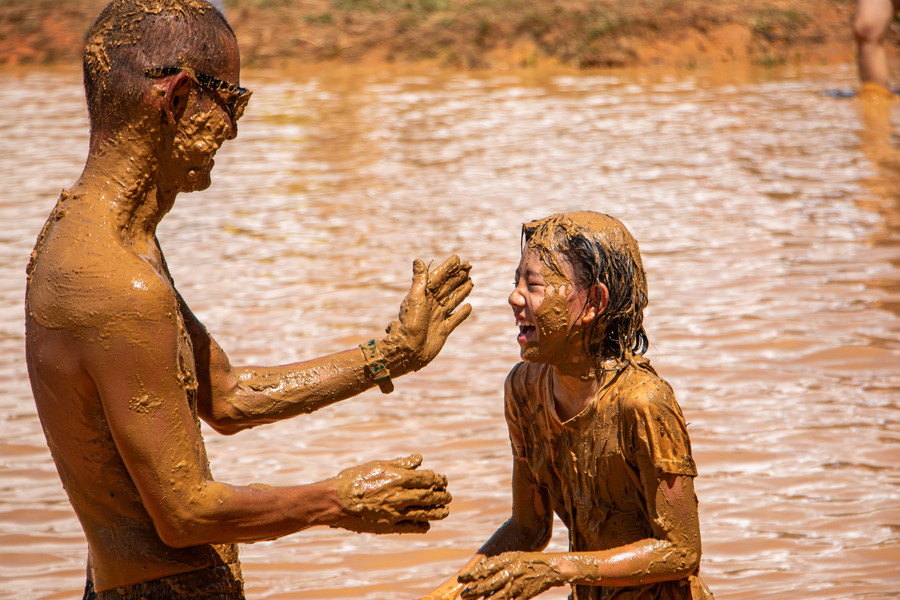 親子で泥をつけあってはしゃいでいて、微笑ましいと感じ撮った写真です。
